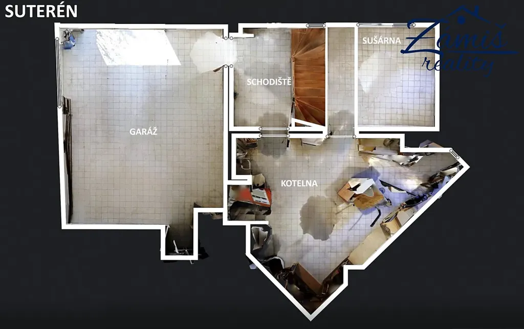 Do garáže v suterénu, která je na úrovni příjezdové silnice, zajedete pohodlně v jedné rovině s vozovkou. Do garáže vedou elektrická vrata na dálkové ovládání.
