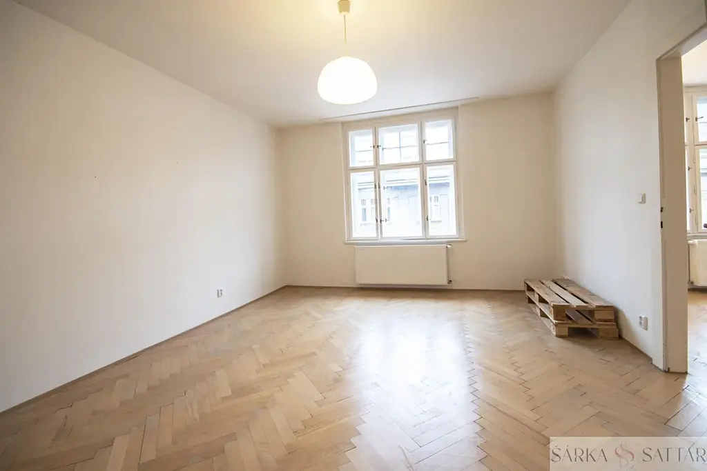 Na podlaze jsou jak parkety tak dlažba. Okna jsou nově repasovaná. Vytápění a ohřev vody je vlastním plynovým kotlem Junkers. Byt je v 4.patře cihlového domu bez výtahu. Součástí nájmu je také komora umístěná v 5.patře.