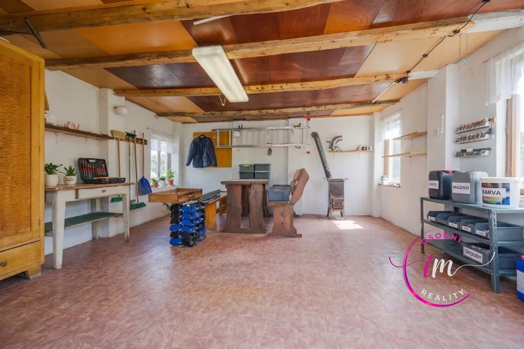 Sklípek vedle ukrývá prostor pro Vaše malé poklady (nebo dostatek láhví vína :) a garáž s dílnou poskytne zázemí pro vaše nápady a tvůrčí schopnosti. Ale i spoustu místa pro posezení s přáteli, když venku zrovna nebude nic moc.