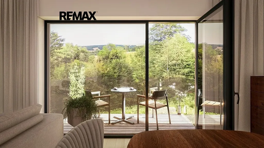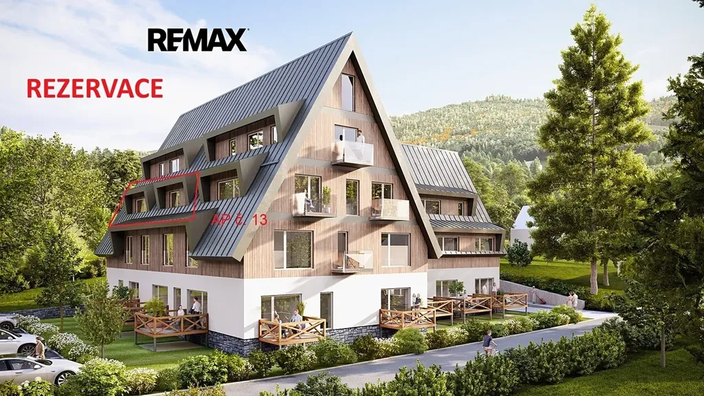 K jednotce náleží balkon o velikosti 2,44 m2, který umožňuje relaxaci s výhledem na okolní přírodu. K jednotce náleží náleží privátní uzamykatelná kolárna + lyžárna, parkovací stání a možnost využívat společného wellness.