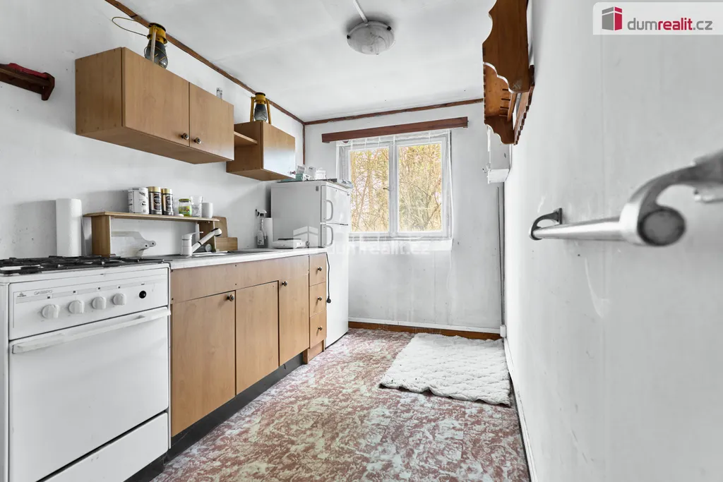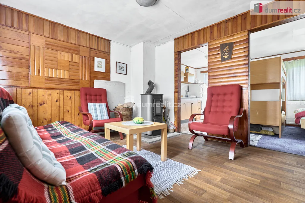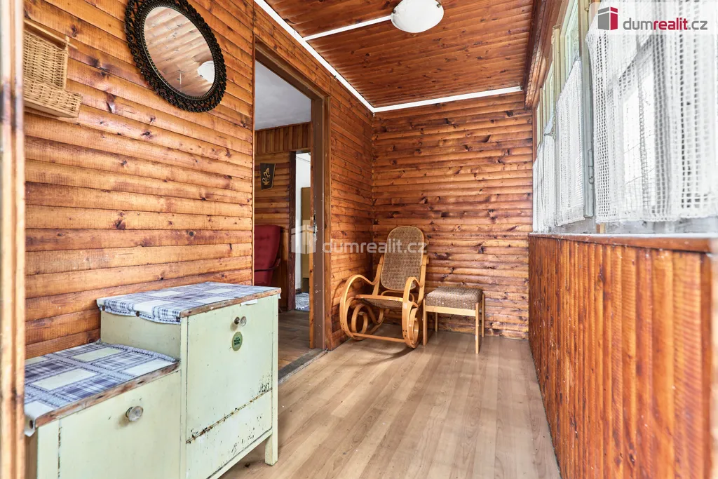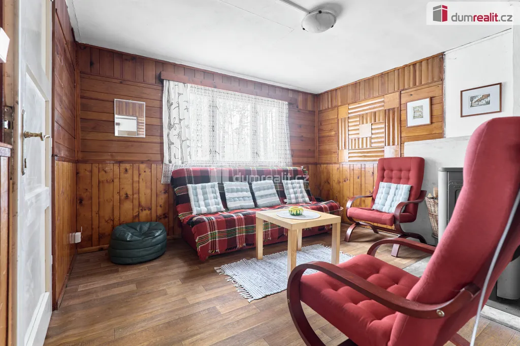 Dumrealit.cz Vám zprostředkuje Nabízíme exkluzivně k prodeji dřevěnou chatu v oblíbené rekreační oblasti u Velkého Rybníku nedaleko Karlových Varů. Poloha přímo v lese, těsně nad hrází, zaručuje klid, soukromí a ideální podmínky pro odpočinek i víkendové pobyty. Objekt je přízemní s předsíní, kuchyní, obývacím pokojem a ložnicí. Celková plocha pozemku je 488 m². Na něm je kromě samotné chaty ještě dřevěná kůlna na nářadí a dřevo. V místě jsou restaurace a menší prodejna, veškerá občanská vybavenost je dostupná v Hroznětíně (3 km), v Ostrově nebo Karlových Varech (obojí cca 9 km). Parkování je možné přímo na pozemku. Ev. číslo: 655395.