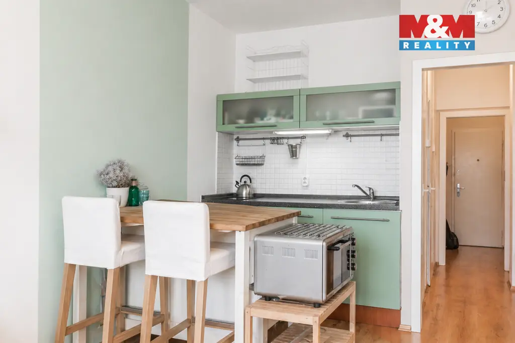 Nabízíme ke koupi útulný byt 1+kk o velikosti 26,8 m² se sklepní kójí (0,8 m²), situovaný ve zvýšeném přízemí (cca 4 m nad terénem) revitalizovaného panelového domu. Byt má zděné jádro s odděleným WC a koupelnou s prostorným sprchovým koutem. Součástí může být stávající vybavení – kuchyňská linka s dvojvařičem, kuchyňský ostrůvek, lednice s mrazákem, pračka i vestavěná skříň ve vstupní hale a šatní skříň v chodbě. Nemovitost je aktuálně pronajata do 31. 8. 2026, ideální jako investice s okamžitým výnosem. Parkování před domem nebo možnost pronájmu místa na hlídaném parkovišti. Výborná občanská vybavenost – Penny market přímo u domu, OC Novodvorská Plaza 5 minut pěšky. Skvělá dopravní dostupnost (bus 196, 197 – M Kačerov / Smíchov). Velkým benefitem je blízkost lesa s množstvím tras pro relax i sport.