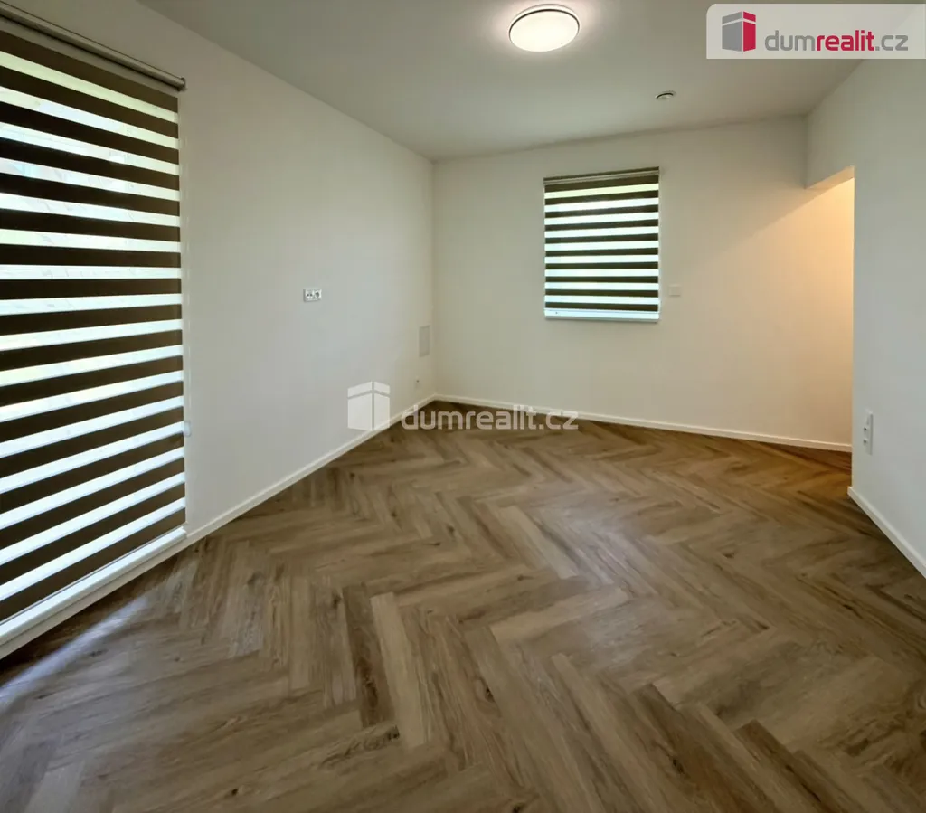 Hlavní obytnou část tvoří prostorný obývací pokoj propojený s kuchyňským koutem. Z této místnosti vede francouzské okno přímo na krytou terasu a do zahrady, což přirozeně propojuje interiér s venkovním posezením. Další část dispozice tvoří ložnice, šatna, dva dětské pokoje, koupelna s vanou a toaletou a technická místnost. Rozvržení domu tak vyhoví běžným potřebám rodiny, která hledá samostatné pokoje, dostatek úložného zázemí i příjemný společný prostor. V podkroví je další prostor pro vybudování minimálně dalších 2 pokojů.