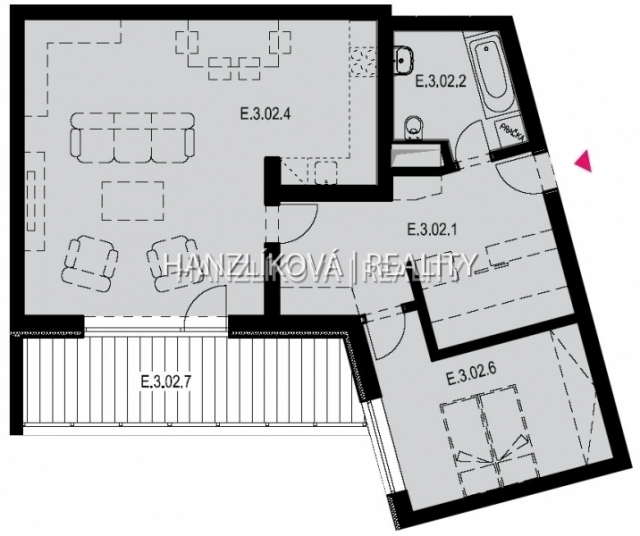 Nabízíme k pronájmu částečně zařízenou bytovou jednotku číslo E.3.02. Jedná se o byt 2+kk o výměře 74,77 m2 + terasa 13,67 m2, který se nachází ve 4.NP rezidenčního komplexu DLOUHÁ LOUKA. Byt se skládá z: prostorné chodby, šatny, koupelny s vanou a toaletou, ložnice a prostorného obývacího pokoje s částečně odděleným kuchyňským koutem, z obývacího pokoje je přístup na terasu. Byt je téměř kompletně vybaven, viz fotografie (ze spotřebičů je v bytě americká lednice, trouba, indukční varná deska, digestoř, myčka, mikrovlnka, vestavěný kávovar, pračka, sušička).