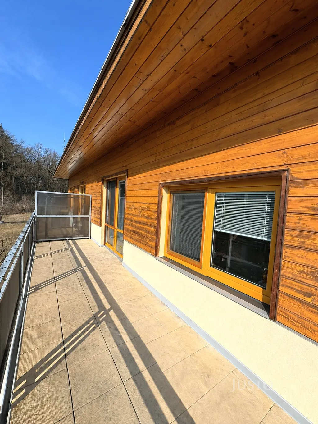 Hlavní obytný prostor s terasou je orientován na jihozápad, což zajišťuje dostatek denního světla po celý den.