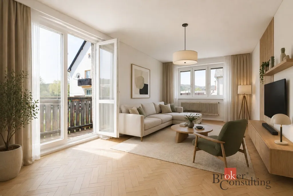 Součástí bytu je také balkon, který nabízí příjemné místo k odpočinku, posezení s kávou nebo pěstování květin.