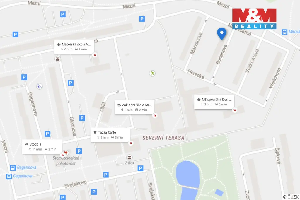 Nabízíme k prodeji byt o dispozici 2+1 a celkové ploše i s příslušenstvím 49,1 m², který se nachází ve 3. patře panelového domu s výtahem v oblíbené lokalitě Ústí nad Labem - Severní Terasa, ulice Burianova. Je v původním dobrém stavu, suchý a udržovaný, s praktickým dispozičním řešením. Díky orientaci na východ a západ je byt příjemně světlý po celý den. Součástí je také sklep a praktická komora v mezipatře. V domě je k dispozici výtah, kočárkárna i kolárna. Parkování je možné přímo u domu na ulici. Lokalita Severní Terasa patří mezi velmi vyhledávané – nabízí kompletní občanskou vybavenost v docházkové vzdálenosti (škola, školka, lékař, obchody, pošta) a zároveň blízkost přírody, která láká k procházkám, cyklovýletům nebo sportu.