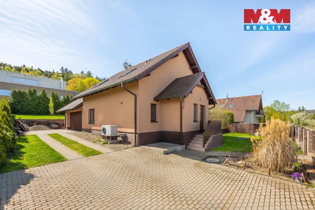 Hledáte oázu klidu pro svou rodinu? Nabízíme Vám rodinný dům v Libušíně, situovaný ve velmi klidné ulici na pozemku o rozloze 918 m². Nemovitost je vzdálena pouhých 5 minut vozem od Kladna a 20 minut od Prahy. Srdcem domu je prosvětlené přízemí, kde najdete velkou kuchyni plynule propojenou s jídelnou, pracovnou a obývacím pokojem. Tento otevřený prostor (70 m²) působí velmi vzdušně, přičemž hřejivou atmosféru dodává krbová vložka. Součástí přízemí je rovněž koupelna s WC a sprchovým koutem. V případě potřeby lze přízemí snadno upravit na dispozici 2+1. V patře (66 m²) se nachází ložnice, posilovna, dětský pokoj a koupelna s vanou a WC. Celková užitná plocha domu činí 136 m² (až 5+1). Dům je vytápěn úsporným tepelným čerpadlem vzduch-voda. K dispozici je dostatek úložných prostor díky dvěma půdám (24 m² v domě a 36 m² nad garáží). Na zahradě vás potěší bazén, posezení pod pergolou a prostorná dvougaráž (36 m²). Nemovitost je možné hradit hypo úvěrem s jehož vyřízením Vám rádi pomůžeme