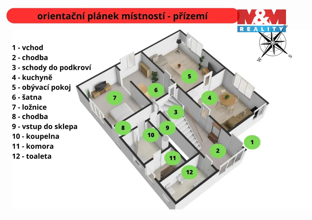 Nabízím k prodeji samostatně stojící rodinný dům v klidné části obce Hněvkovice (k.ú. Hněvkovice u Ledče nad Sázavou). Dům o užitné ploše cca 120 m² nabízí praktické dispoziční řešení – v přízemí 3+1 a v podkroví dva dětské pokoje, ideální pro rodinné bydlení. Součástí je i sklep. Nemovitost stojí na krásném rovinatém pozemku o výměře 673 m², kde najdete dřevěnou pergolu jako stvořenou pro letní posezení, grilování a chvíle pohody s rodinou či přáteli. K dispozici je také samostatně stojící garáž a kůlna, které oceníte pro parkování i uskladnění věcí. O teplo domova se stará kotel na tuhá paliva a příjemnou atmosféru dotváří krbová kamna v obývacím pokoji. Veškerá občanská vybavenost je v Ledči nad Sázavou, která je vzdálená pouhých 5 minut jízdy. Vodní nádrž Švihov (Želivka) cca 10 minut, nájezd na D1 do 25 minut. Ideální volba pro ty, kteří hledají klid, prostor a potenciál – ať už pro vlastní bydlení, nebo jako investici. Pokud vás tato nabídka zaujala, zavolejte mi nebo napište.