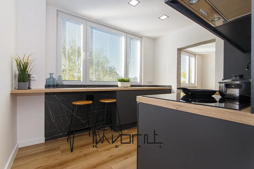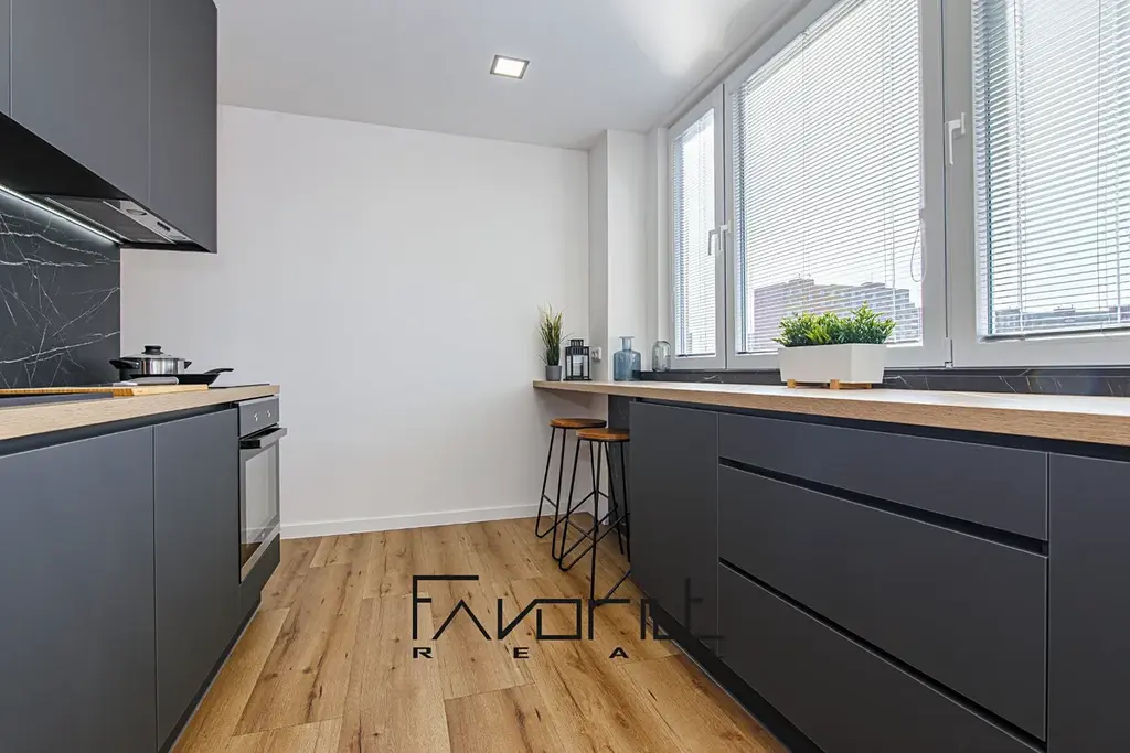 Byt je kompletně nový s nadstandardním designem a prostornou koupelnou, vestavnou skříní v chodbě. V domě po kompletní revitalizaci (fasáda, zateplení, dveře, domovní telefon, schránky, vchodové dveře, výtah).