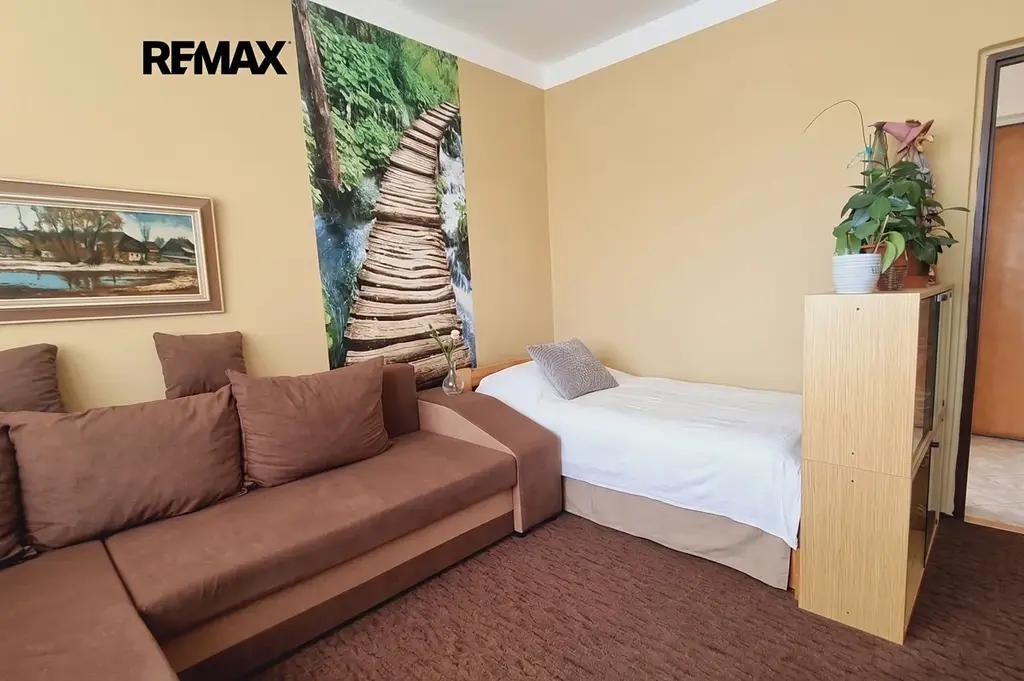 Nabízíme k prodeji byt 3+1 2. NP s výtahem o ploše 65,64 m² a s lodžií (3 m²), který je zatížen věcným břemenem doživotního užívání pro současné majitele (69 a 68 let). Dispozice zahrnuje obývací pokoj (18,2 m²), ložnici (13,91 m²), pokoj (10,94 m²), kuchyň (6,75 m²), předsíň (9,11 m²), šatnu (2,85 m²), koupelnu, WC a spíž. Byt je vybaven dvěma klimatizačními jednotkami, v pokojích jsou parkety, v kuchyni a na chodbě dlažba. V domě byly minulý rok dělány nové stoupačky a topení je řešeno dálkově. Zálohy na služby ve výši 5 101 Kč si i nadále hradí majitelé, kteří nebudou platit žádné nájemné. Ideální volba pro dlouhodobé zhodnocení financí. V případě dotazů a Vašeho zájmu mě kontaktujte.