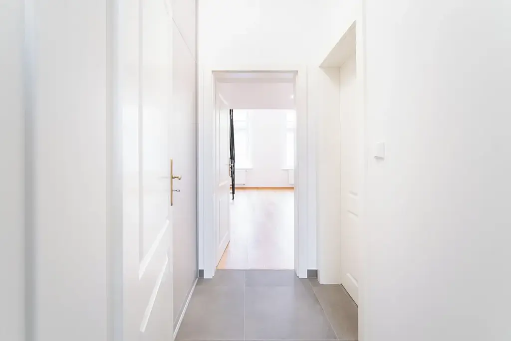 Prosím, koukněte na plánek bytu. Fotky jsou z podobného bytu v budově.