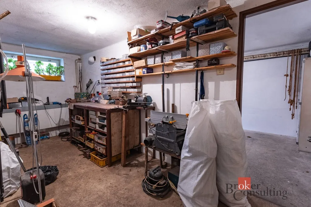 Suterénu je garáž s dílnou technická místnost a další místnosti na uskladnění věcí včetně prádelny. V 1.NP je kuchyň, koupelna, WC obývací pokoj, jídelní kout, ložnice a pracovna. podkroví má koupelnu, WC, ložnici, obývací pokoj, menší místnost, kam je přiveden odpad a voda a lze zde zbudovat další menší kuchyň. také jsou zde ještě udělané menší prostory pro uskladnění věcí, a plus ještě půda.