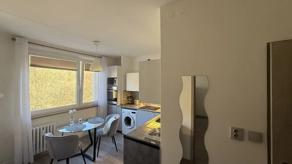 Dominantou tohoto bydlení je zejména naprostý klid, moderní účelná rekonstrukce a hezké zařízení bytu.
