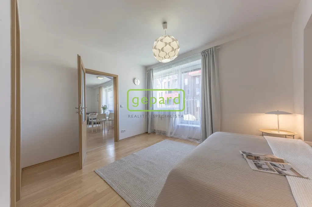 Byt je orientovaný na západ, díky čemuž je krásně prosvětlený po celé odpoledne a nabízí příjemnou atmosféru pro každodenní život i relax. Velká francouzská okna tento pocit ještě umocňují a dávají prostoru vzdušnost a lehkost.