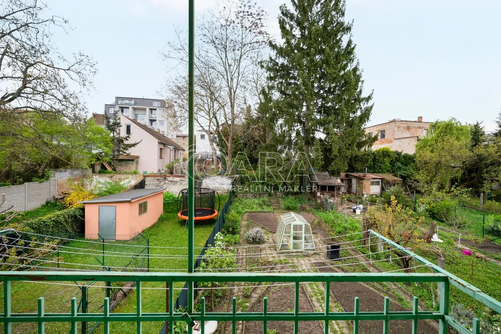 V Brně je parkování klíčovým prodejním argumentem. Tento dům disponuje vlastním pozemkem předzahrádky, který lze snadno přeměnit na další parkovací stání pro nájemníky či návštěvy. Za domem se pak otevírá oáza klidu. Zahrada se skleníkem a chatkou na nářadí nabízí prostor pro relaxaci. Vlastní studna na užitkovou vodu je v dnešní době neocenitelným zdrojem úspor při údržbě zeleně.