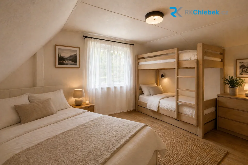 2 útulné pokoje na spaní v podkroví