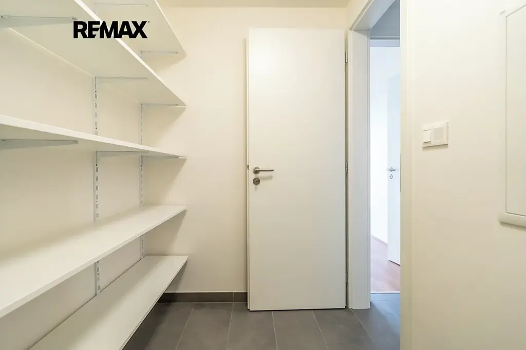 K bytu náleží plnohodnotné garážové stání, které zaručuje bezpečí a pohodlí pro vaše vozidlo a samostatný sklep 3 m².