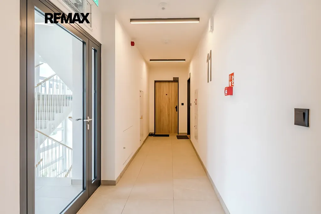 Byt a dům mají bezbariérový přístup a moderní výtah, který zajišťuje maximální komfort. Parkovací stání v domě, -4PP, je součástí pronájmu.