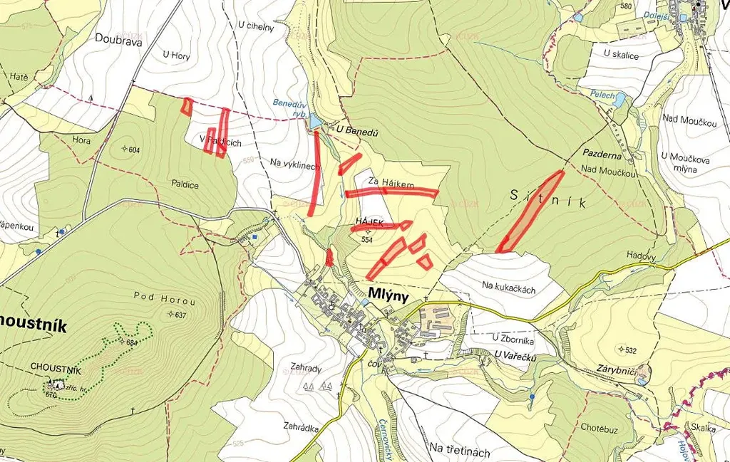 K prodeji je půda na pozemcích parc. č. 69, 792, 803, 867, 896/6, 896/9, 896/13, 915, 921, 953, 954, 961, 1007/16, 1007/17, 1007/18, 1007/41, 1095/7, 1136, 1139, 1143 a 1155 zapsaných na LV 169 v KÚ Mlýny u Choustníku.