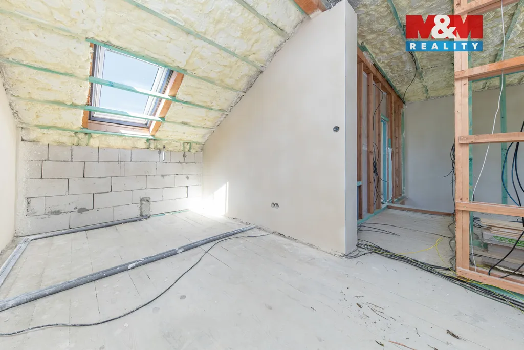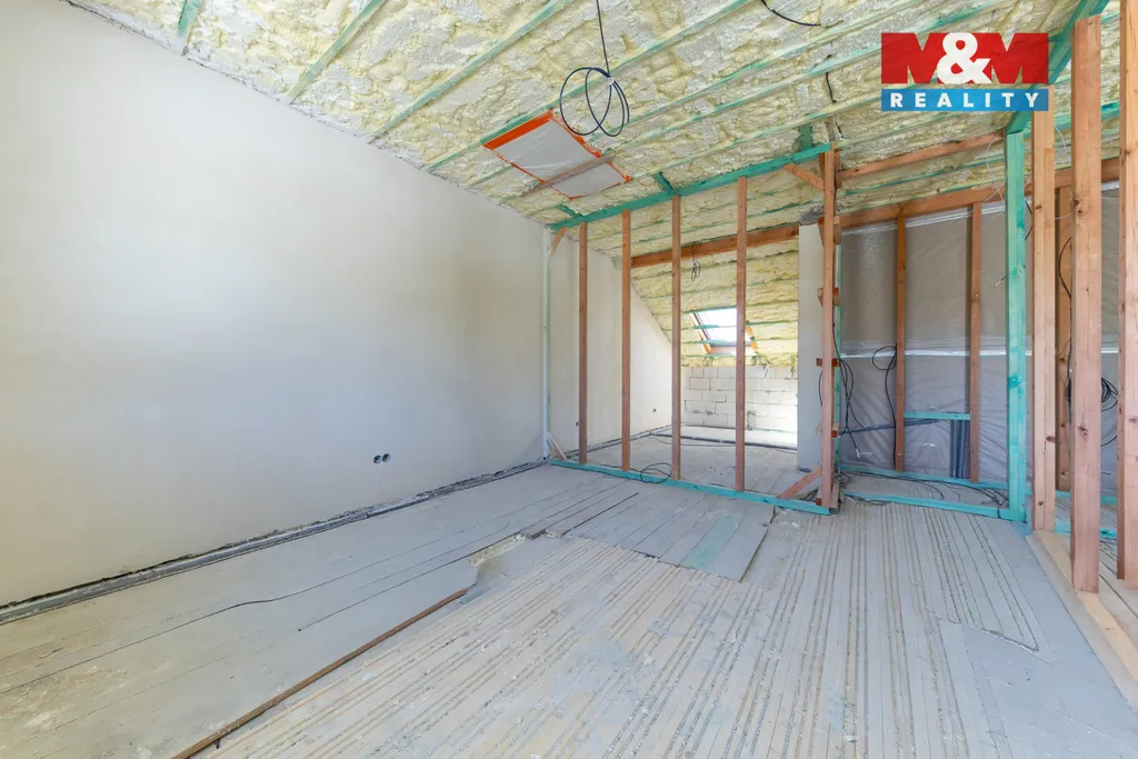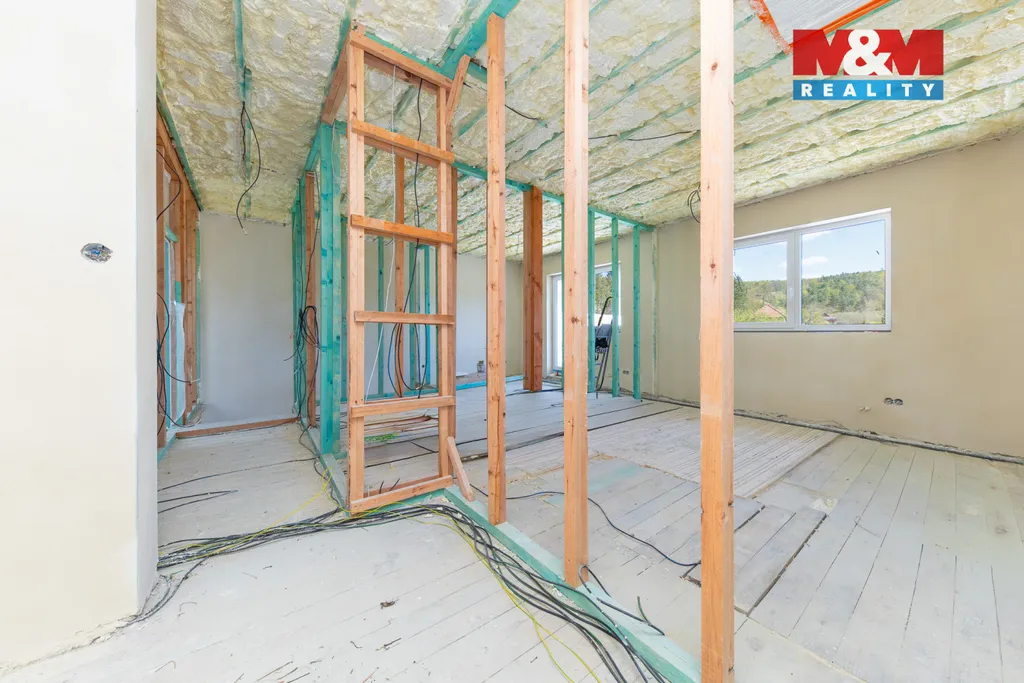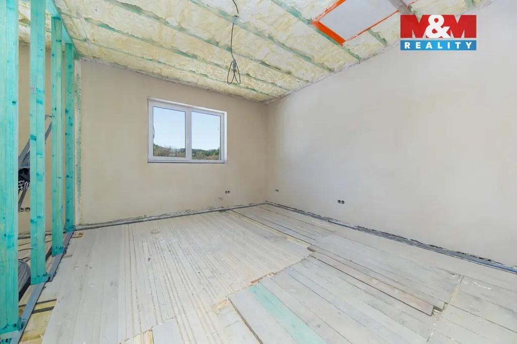 Nabízíme k prodeji moderní novostavbu rodinného domu ve fázi dokončování, je ideální pro ty, kteří si chtějí finální podobu přizpůsobit dle vlastních představ, ať již současným majitelem, či sami noví majitelé. Dokončují se práce na podlahovém vytápění ve spodním patře a příčkách ve vrchním. Disponuje plastovými okny s trojskly, předokenními žaluziemi a prvky chytré domácnosti. Součástí je prostorná garáž a parkovací místa před domem. Ze vstupní části se vchází do prostorného obývacího pokoje s kuchyňským koutem, který tvoří přirozené srdce celého domu a nabízí dostatek prostoru pro rodinný život i setkávání s přáteli. Odtud je vstup do samostatného pokoje s výstupem na menší terasu, ideální například jako pracovna či pokoj pro hosty a menší koupelna s WC a sprchou. V patře se nachází tři samostatné pokoje z jednoho opět výstup na další terasu, koupelna, samostatné WC a technická místnost. Jistě potěší i zahrádka s dostatkem soukromí. Část fotografií jsou vizualizace pro vaši představu