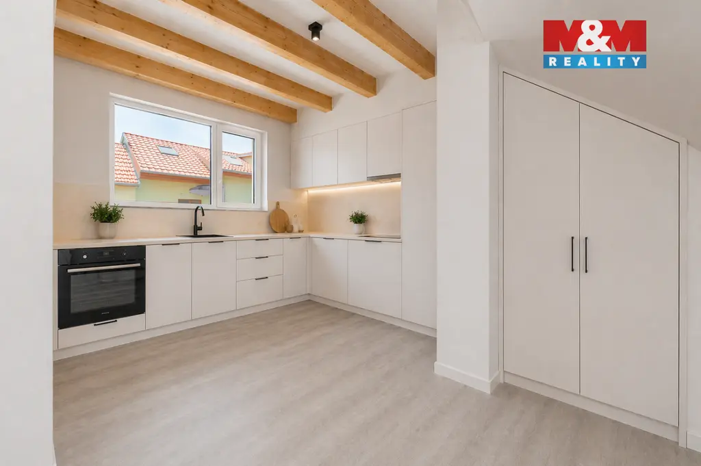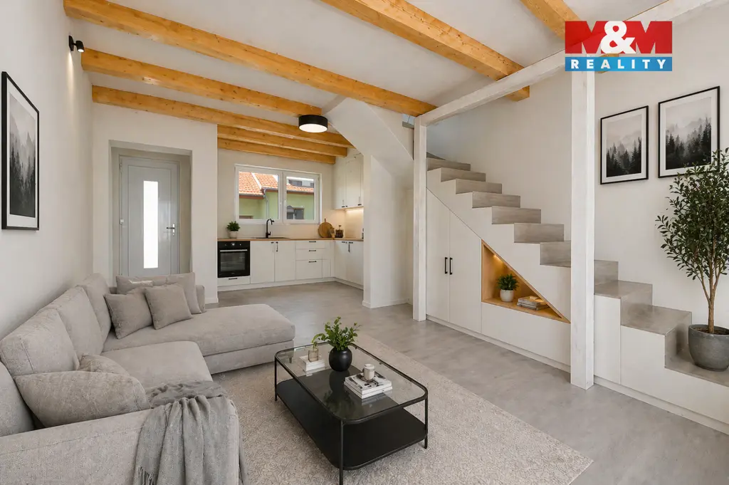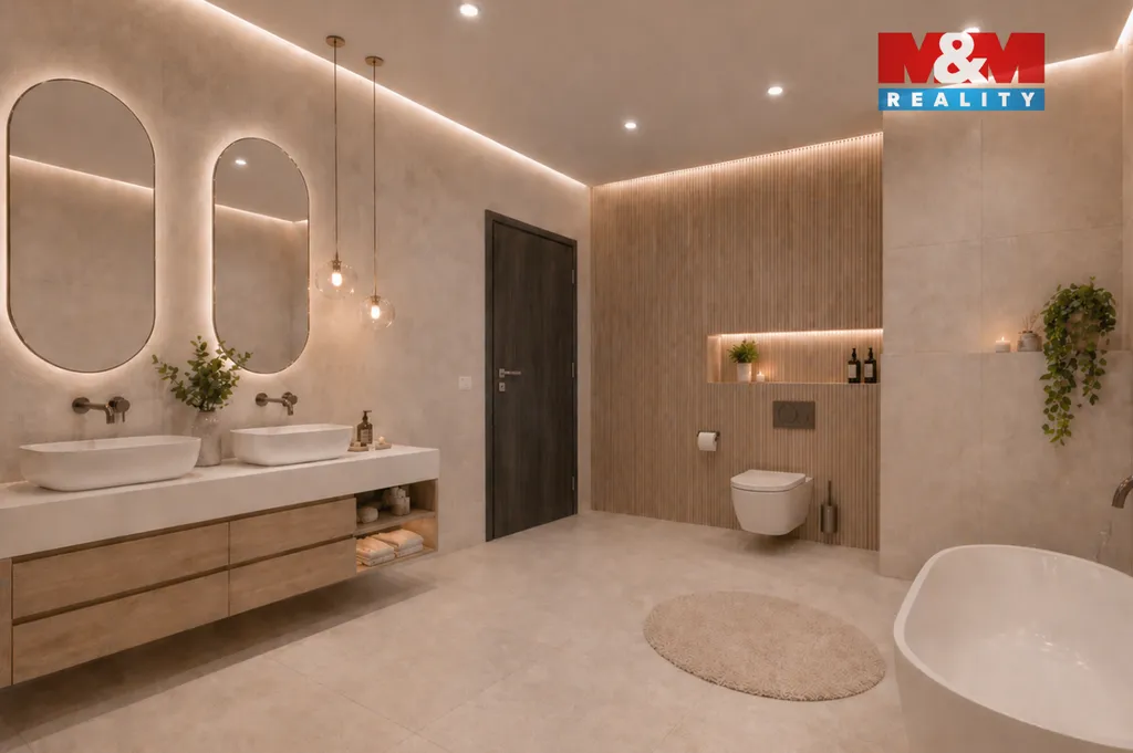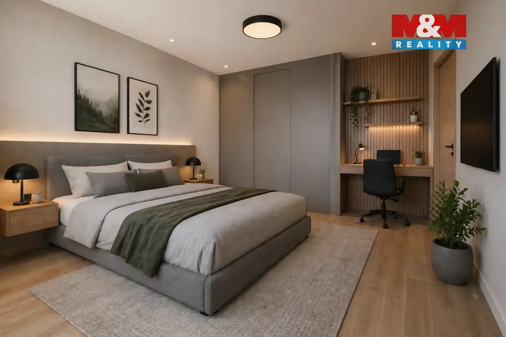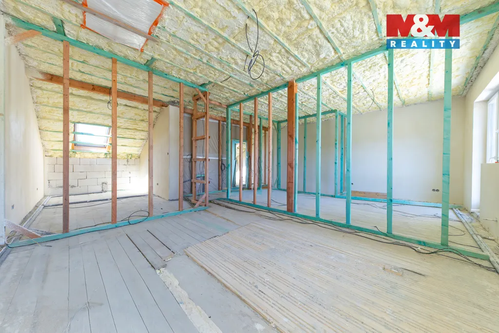 Nabízíme k prodeji moderní novostavbu rodinného domu ve fázi dokončování, je ideální pro ty, kteří si chtějí finální podobu přizpůsobit dle vlastních představ, ať již současným majitelem, či sami noví majitelé. Dokončují se práce na podlahovém vytápění ve spodním patře a příčkách ve vrchním. Disponuje plastovými okny s trojskly, předokenními žaluziemi a prvky chytré domácnosti. Součástí je prostorná garáž a parkovací místa před domem. Ze vstupní části se vchází do prostorného obývacího pokoje s kuchyňským koutem, který tvoří přirozené srdce celého domu a nabízí dostatek prostoru pro rodinný život i setkávání s přáteli. Odtud je vstup do samostatného pokoje s výstupem na menší terasu, ideální například jako pracovna či pokoj pro hosty a menší koupelna s WC a sprchou. V patře se nachází tři samostatné pokoje z jednoho opět výstup na další terasu, koupelna, samostatné WC a technická místnost. Jistě potěší i zahrádka s dostatkem soukromí. Část fotografií jsou vizualizace pro vaši představu