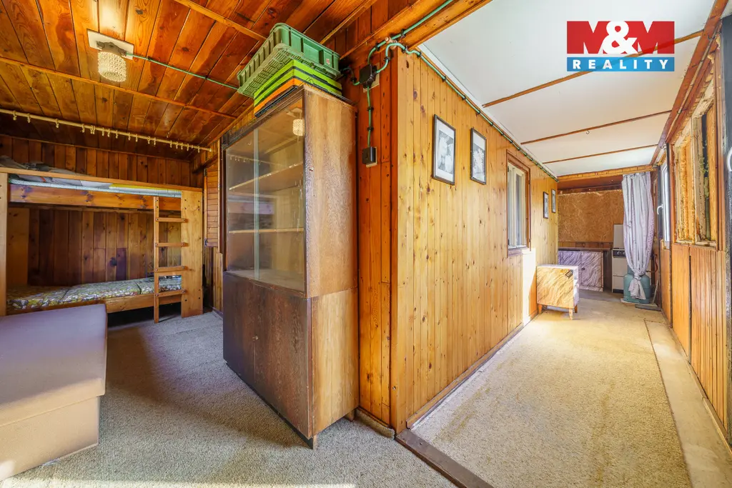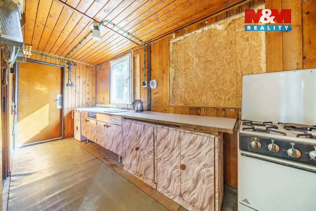Nabízíme k prodeji zahradu s chatou se zastavěnou plochou 46 m², situovanou v klidné a vyhledávané lokalitě, s krásným výhledem na řeku Ohři. Pozemek o celkové výměře 501 m² je svažitý, přičemž jeho část byla terénně upravena do roviny, což vytváří ideální prostor například pro umístění bazénu. Nemovitost je částečně podsklepená, stojí na zděných základech a její konstrukce je dřevěná. Má novou fasádu (bez zateplení). Dispozičně nabízí kuchyni, obytný pokoj s kamny na tuhá paliva, která slouží jako zdroj vytápění, a v zadní části oddělený spací prostor. Koupelna je přístupná z venkovní části a je vybavena sprchovým koutem a umyvadlem, toaleta se nachází v zadní části chaty. Do objektu je zavedena elektřina, voda je užitková a sezonní, odpad je řešen septikem. Vedle chaty se nachází pergola, která poskytuje příjemné zázemí.