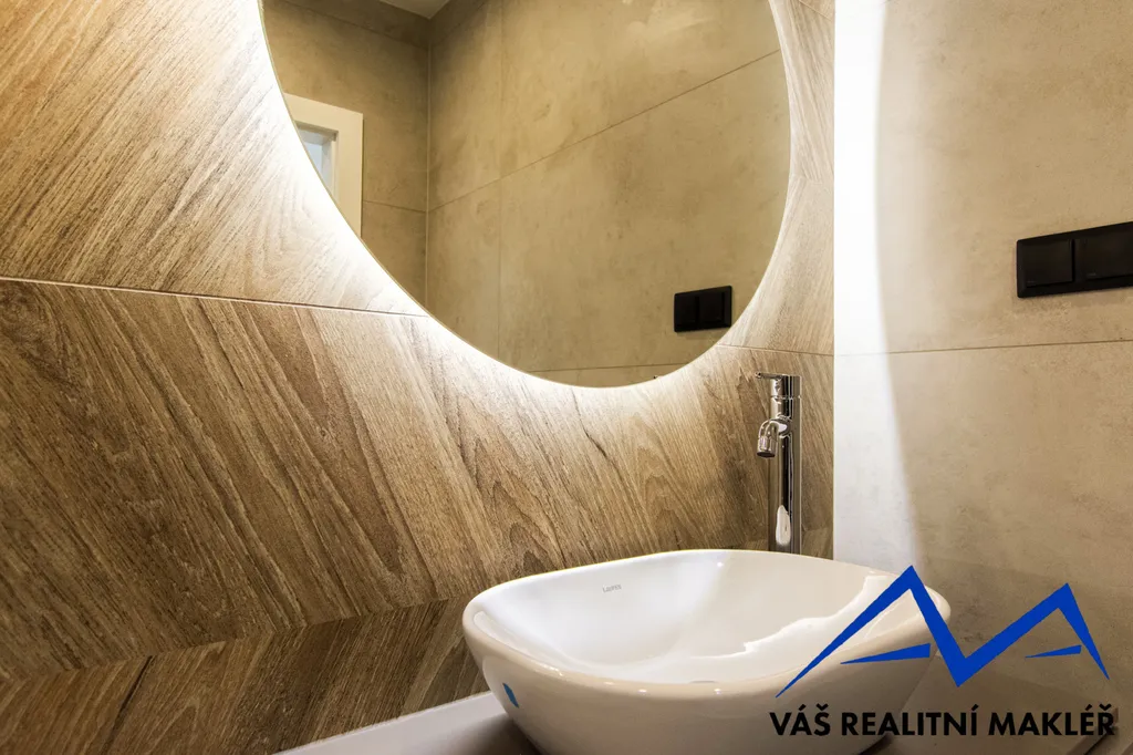 Interiér domu je kompletně dokončen – v ceně jsou podlahy, koupelna se sprchovým koutem i vanou, samostatné WC, interiérové dveře i osvětlení. Kuchyňská linka není součástí, což dává novému majiteli možnost realizace dle vlastních představ.