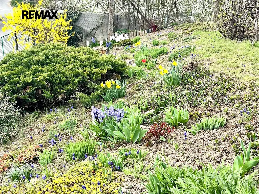 Zahrádka se skalkou o rozloze 312 m2 je mírně svažitá, jsou zde ovocné stromky a keře.