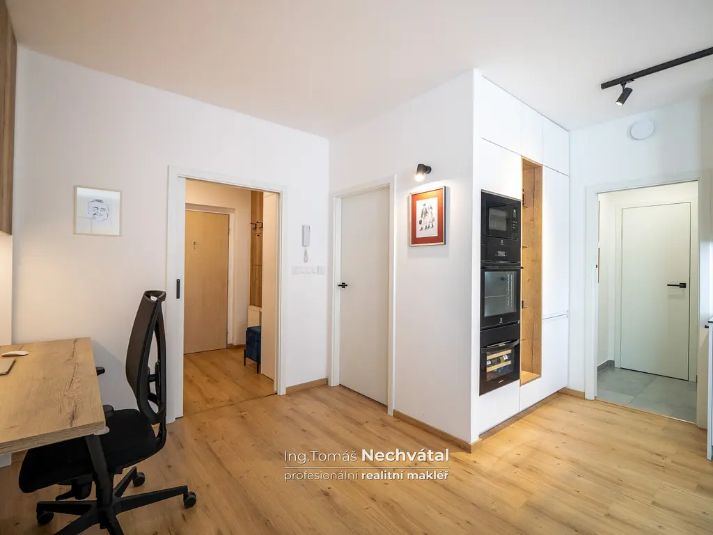 Nastěhovat se můžete téměř okamžitě a v bytě můžeme nechat i jeho vybavení (součástí prodeje je vestavěný nábytek, svítidla, závěsy.