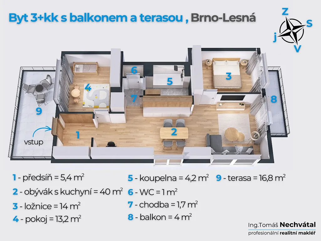 Prodej bytu 3+kk s balkonem a terasou v Brně na Lesné-MÁTE-LI RADĚJI ZELENOU, NEŽ ŠEDIVOU