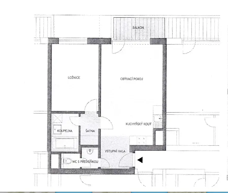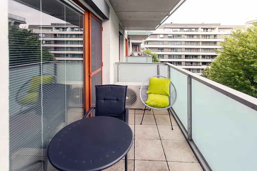 Byt se pronajímá kompletně zařízený a je orientovaný do klidné, pečlivě upravené japonské zahrady, která vytváří naprosto výjimečnou atmosféru soukromí a klidu přímo v centru města. Součástí bytu je také balkon přístupný z obývací části. Prvek, který tyto byty činí dlouhodobě velmi žádanými.