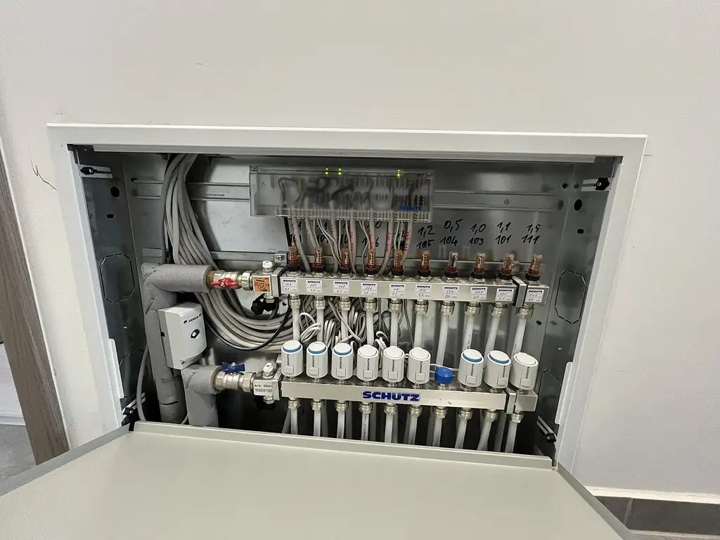 Dům má podlahové vytápění s elektrokotlem. V obývacím pokoji s kuchyňským koutem jsou instalovaná krbová kamna. Ohřev vody je v elektrickém zásobníkovém ohřívači. Okna jsou plastová se skly DITHERM. Venkovní dveře jsou z dřevěných EURO profilů. Podlahy jsou plovoucí a z keramických dlaždic. V kuchyňské lince je osazena sklokeramická varná deska, elektrická trouba, mikrovlnná trouba, myčka, dřez a digestoř. Na kuchyňský kout navazuje spíž.