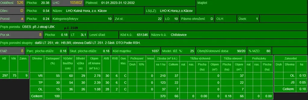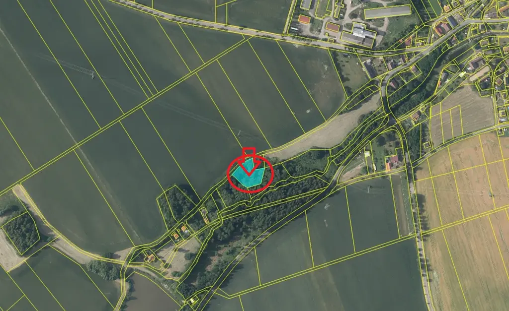- p.č. 2350 vedená jako lesní pozemek o celkové výměře 2 462 m2, z toho vlastníme podíl 1/4 tedy 616 m2 (stáří lesa 108 let - zastoupení dřevin olše. modřín, střemcha obecná).