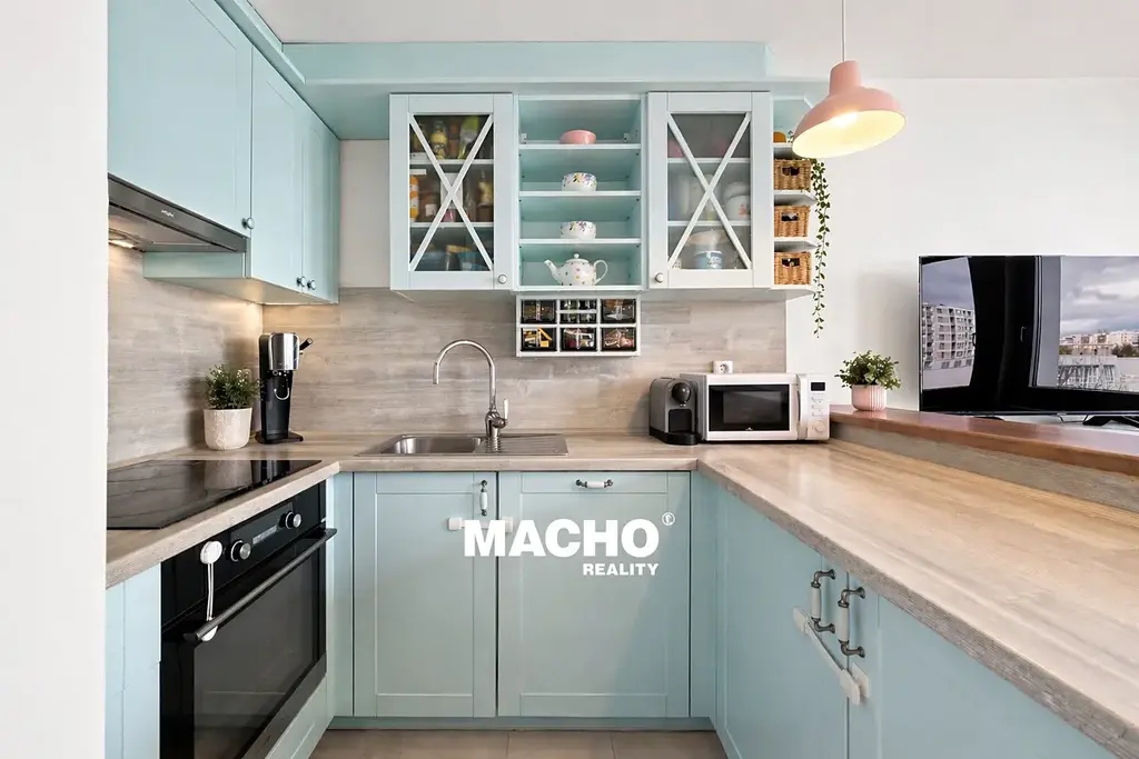 Srdcem bytu, který v roce 2019 prošel kompletní a kvalitní rekonstrukcí, je kuchyňská linka vyrobená na zakázku. Stejnou pozornost věnoval majitel i předsíni, kde byla instalována vestavěná skříň na míru zajišťující dostatek úložného prostoru hned u vstupu do bytu.