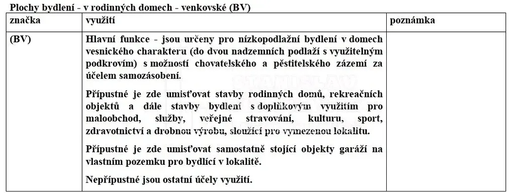 Pozemek je v zastavitelném území obce a v územním plánu jsou vedeny jako BV (tedy plochy bydlení v rodinných domech - venkovské). Je možná výstavba domu o 2 podlažích + obytném podkroví. Zastavitelnost pozemků je maximálně 30 %, minimální ozelenění pozemku je 60 %. Přístup k pozemku je přes cestu ve vlastnictví obce.