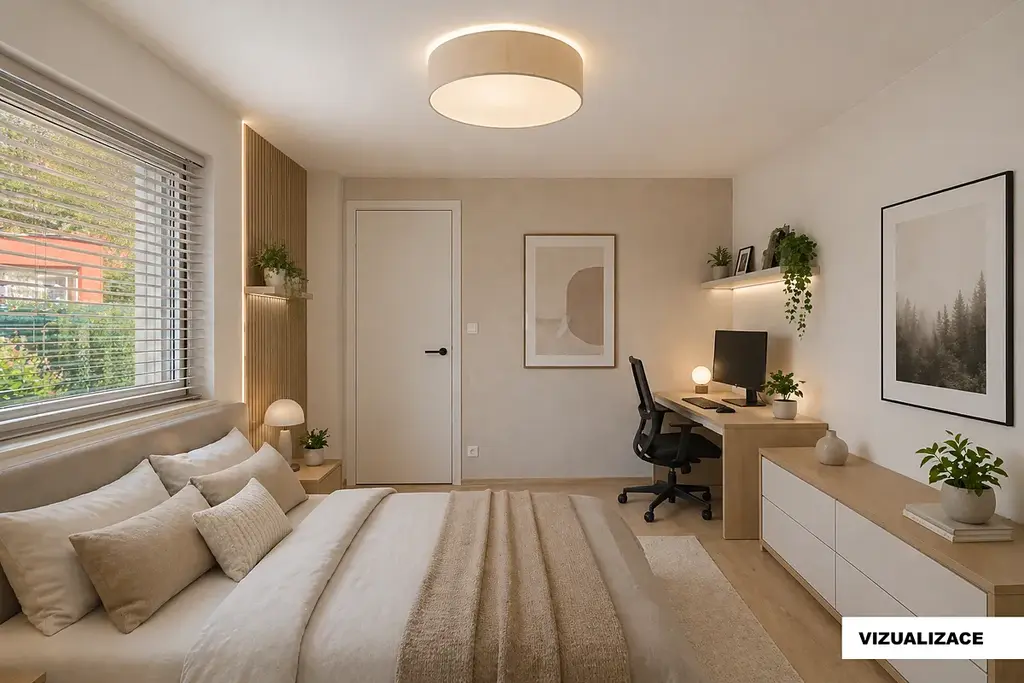 V podkrovním prostoru se počítá s ložnicí se vstupem na příjemnou lodžii s výhledem na pstruhový Homolský potok. Součástí podkroví je i WC s umyvadlem.