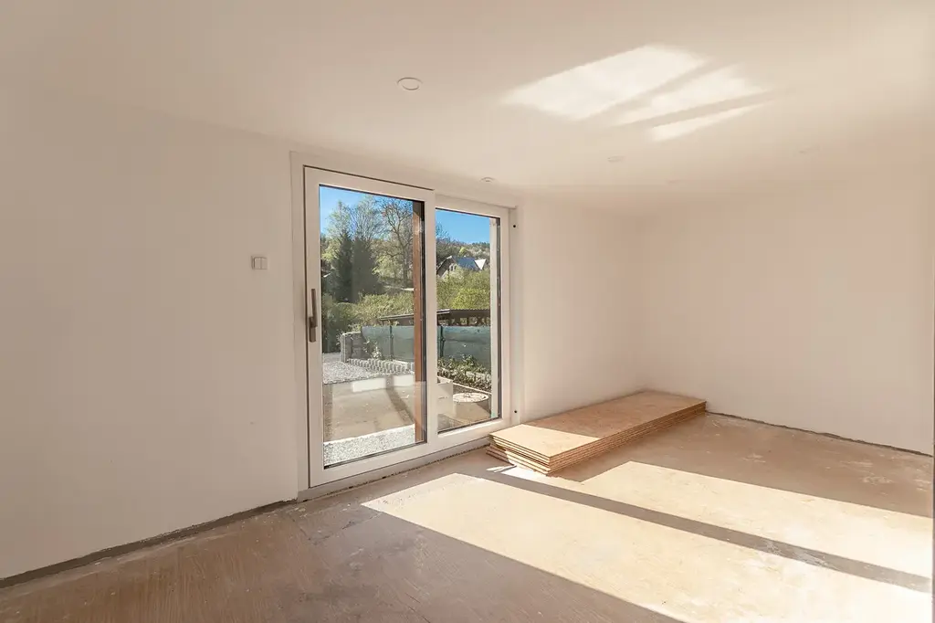 Přípravu na dobíjení OA jistě uvítají majitelé elektro automobilů. Záměr se týká i posuvné brány na 150 cm výšky s výplní. Plyn je zaveden a v stavební dokumentaci je počítáno s vytápěním plynovým kotlem. Objednané dřevěné schodiště z kuchyňského prostoru do podkroví je ve výrobě a budou součástí předání v ceně. Kuchyňský prostor je plně zajištěn sítěmi. Přízemní prostory jsou osazený okny s trojsklem HS portal včetně balkonových dveří na budoucí terasu. V obývacím pokoji je komínový vývod pro krbová kamna.
