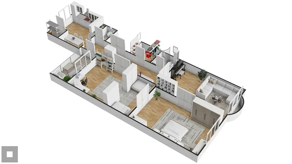 Obytná část se skládá ze tří prostorných pokojů. Obývací pokoj je orientovaný do ulice Hlinky a nabízí možnost vstupu do arkýře. Ve dvou pokojích je k dispozici přístup do komína, který umožňuje případné budoucí napojení krbu. Ložnice a dětský pokoj disponují praktickým řešením s možností dvou vstupů a díky dispozici lze snadno vybudovat samostatné šatny.