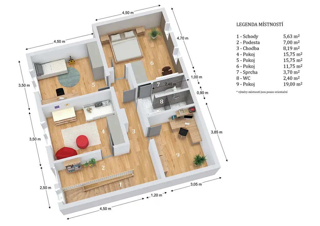 Jednotlivé výměry místností: