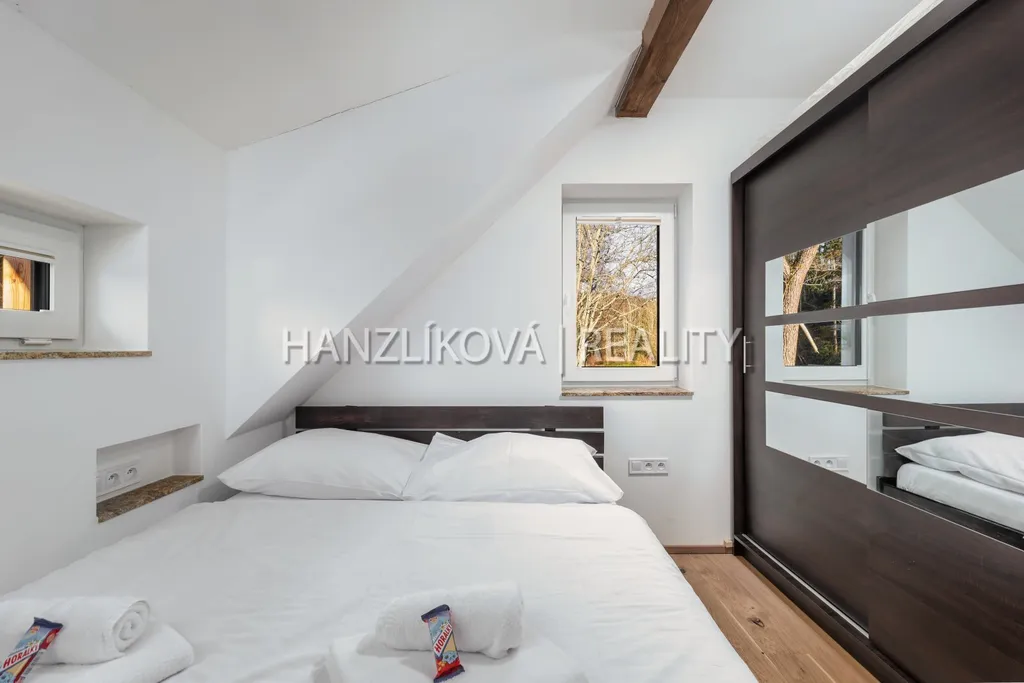 Nabízíme k dlouhodobému pronájmu jedinečný rekreační dům (hájovnu) v obci Pernek, jen pár minut od břehu Lipna. Dům je součástí komorního areálu „Venkovské usedlosti Pernek“ a byl zkolaudován v roce 2022. Dům stojí na vlastním pozemku o výměře 1381 m² a nabízí užitnou plochu přes 156 m², rozdělenou do dvou podlaží.