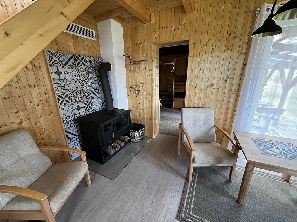 Krásná chata u Pelhřimova Na základě výhradního zastoupení nabízíme k prodeji krásnou novostavbu dřevěné chaty na polosamotě s možností celoročního bydlení. Chata sestává z obývací kuchyně, obývacího pokoje, dalšího pokoje a v 2.NP se nachází ložnice a dále spací prostor pro případné návštěvy. Zastavěná plocha je 54 m2. Na pozemku se nachází vlastní vrt, ze kterého je voda dovedena do chaty, odpady jsou svedeny do jímky o objemu 4 m3. Elektřina je řešena fotovoltaickými panely a v případě potřeby elektrocentrálou. Na pozemku dále stojí dřevěný sklad nářadí. Jednou z předností nemovitosti je její umístění u lesa, mimo obytnou zónu. V sousedství se nachází pouze jedna chata a menší zahrádka. Chata je do této doby téměř neužívaná, v perfektním stavu, postavená a zařízená pro užívání i větší rodiny. Vše, co je na fotografiích, tak je součástí prodeje. Pozemek o celkové výměře 1100 m2 je oplocený. Místo i celá stavba je velice příjemná a určitě si ji zamilujete hned při první návštěvě. Pro více informací volejte makléře!