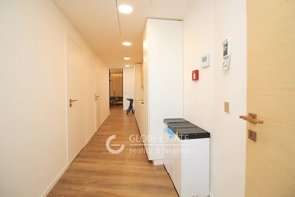 Tato jedinečná jednotka, umístěná v 1. nadzemním podlaží, nabízí velkorysou plochu 86,21 m², dispozičně řešenou jako moderní 2+kk, to poskytuje maximální flexibilitu pro různé podnikatelské záměry. Kanceláře doplňuje privátní terasa o rozloze 42,67 m², která představuje ideální místo pro relaxaci, neformální schůzky nebo inspirativní venkovní pracovní prostor.
