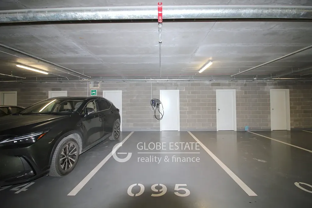 Součástí nabídky je ve 3. podzemním podlaží také garážové stání č. 095, které je vybaveno wallboxem pro pohodlné nabíjení elektromobilů, a praktický sklep o velikosti 5,3 m².