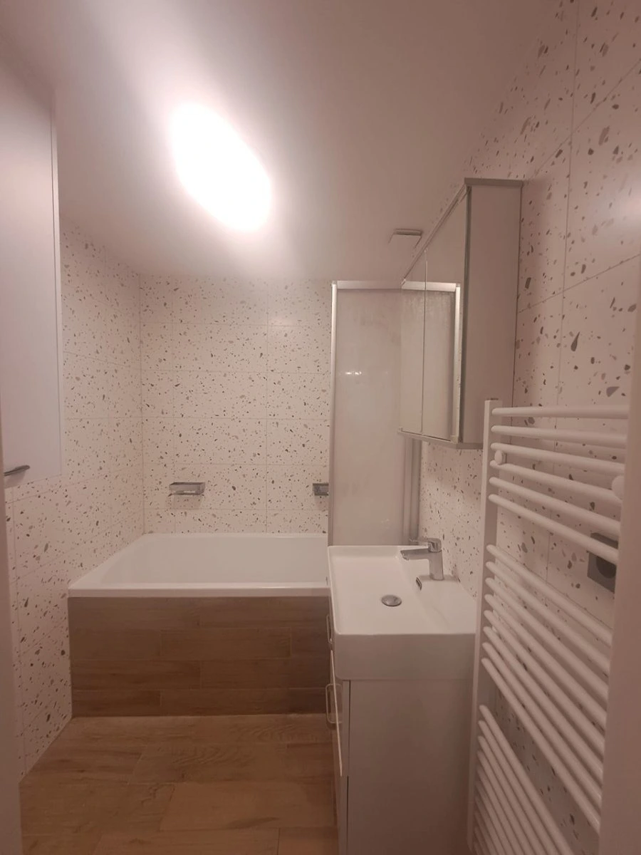 Byt prošel citlivými úpravami a je udržován ve velmi dobrém stavu, připraven k okamžitému nastěhování. Díky tomu, že je nabízen jako nevybavený, získáváte jedinečnou možnost zařídit si interiér přesně podle svých představ a vytvořit si tak skutečný domov s osobitým stylem. Srdcem bytu je velkorysý obývací prostor s kuchyňským koutem, který je ideální pro rodinná setkání i relaxaci.