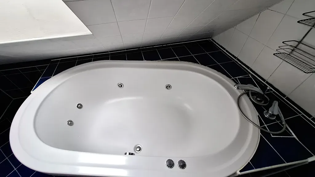 K vytápění a ohřevu vody slouží elektrický kotel umístěný v koupelně v prvním patře.