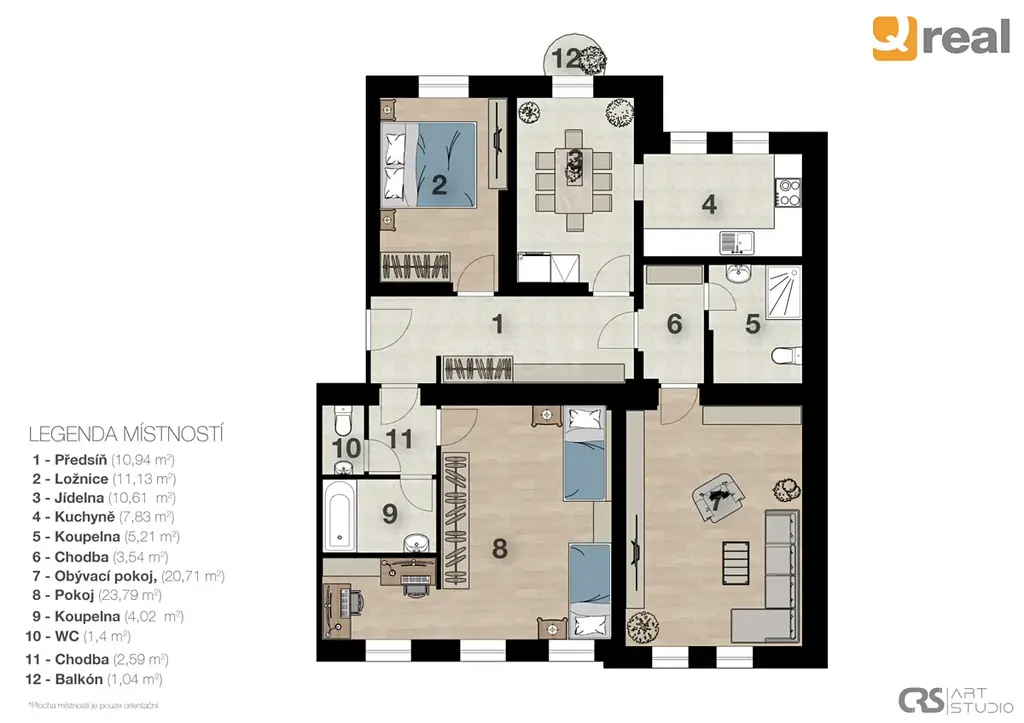 • Dispozice 4+1 s oddělenou jídelnou – praktické a velmi pohodlné řešení pro každodenní život.