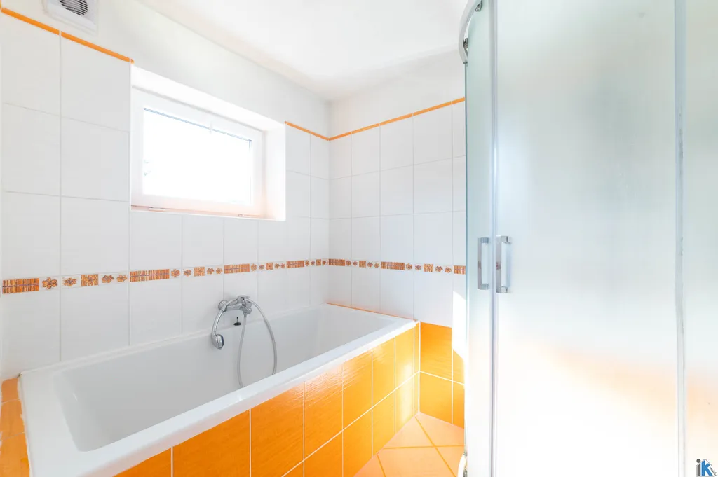 V přízemí dále najdete kuchyni, obývací pokoj, samostatné WC a prostornou koupelnu se sprchovým koutem i vanou. V patře jsou dva pokoje a další prostor, který nabízí skvělý potenciál pro dobudování druhého sociálního zázemí, šatny nebo dalšího pokoje podle vašich potřeb.