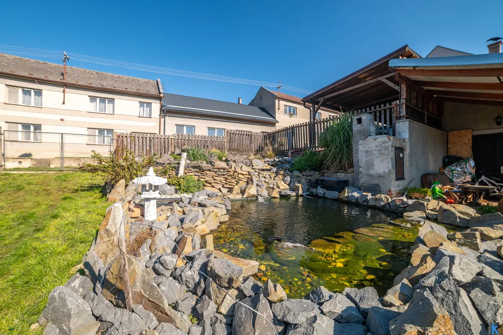 Skutečnou třešničkou na dortu je koupací jezírko, které dodává celé nemovitosti jedinečnou atmosféru a vytváří na zahradě výjimečné místo pro relaxaci během teplých dnů.