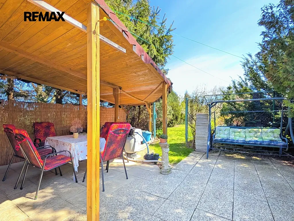 Na zadní, užitkové části najdete záhony, ovocné keře a stromy včetně impozantního ořešáku. Díky velmi kvalitní půdě se můžete těšit na bohatou úrodu ořechů, meruněk, třešní, rybízu a dalších plodin.